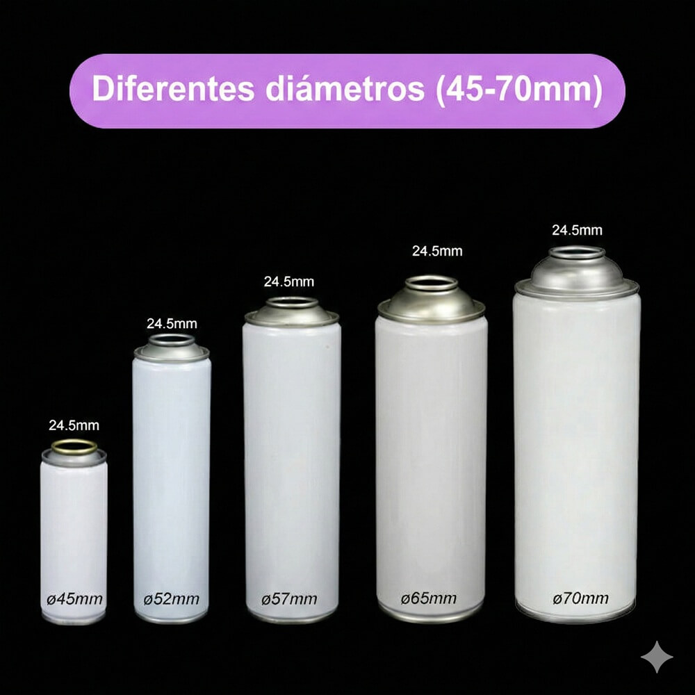 | Lata de Aluminio (Vacía) | 400 ml (13.5 oz) | 59 mm o 66 mm | Abanico Ajustable | $8.10 MXN | $0.45 USD |